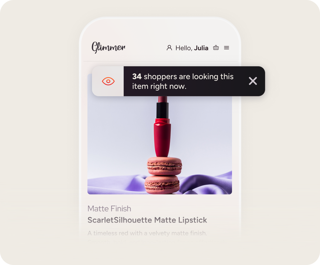 Mostre aos shoppers o que outros entusiastas da beleza adoram. Exiba provas sociais no seu site para reduzir o tempo de decisão e aumentar vendas.