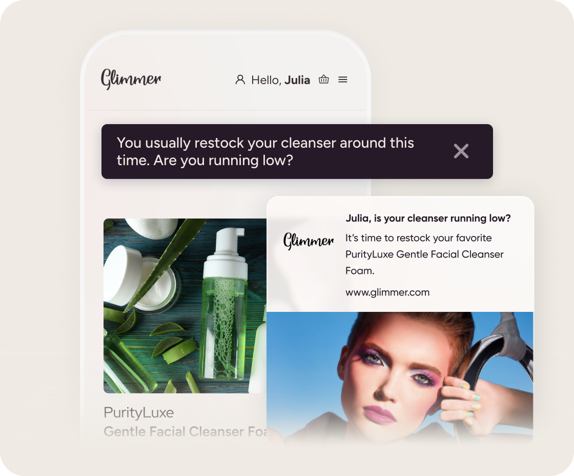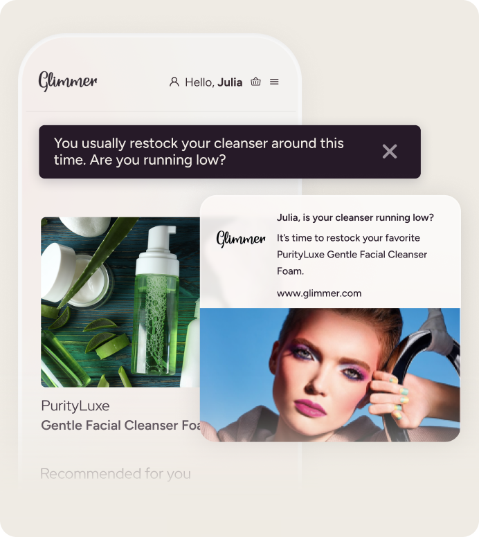 Impulsione descoberta personalizada de produtos, recompras e jornadas que fazem o shopper de beleza voltar sempre.