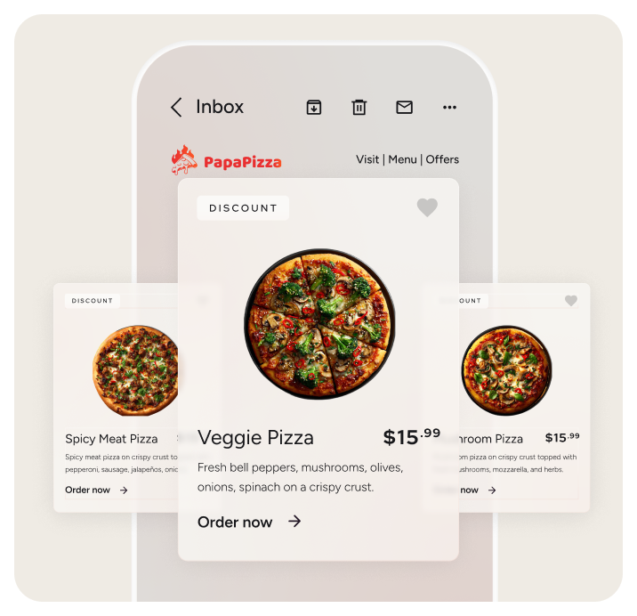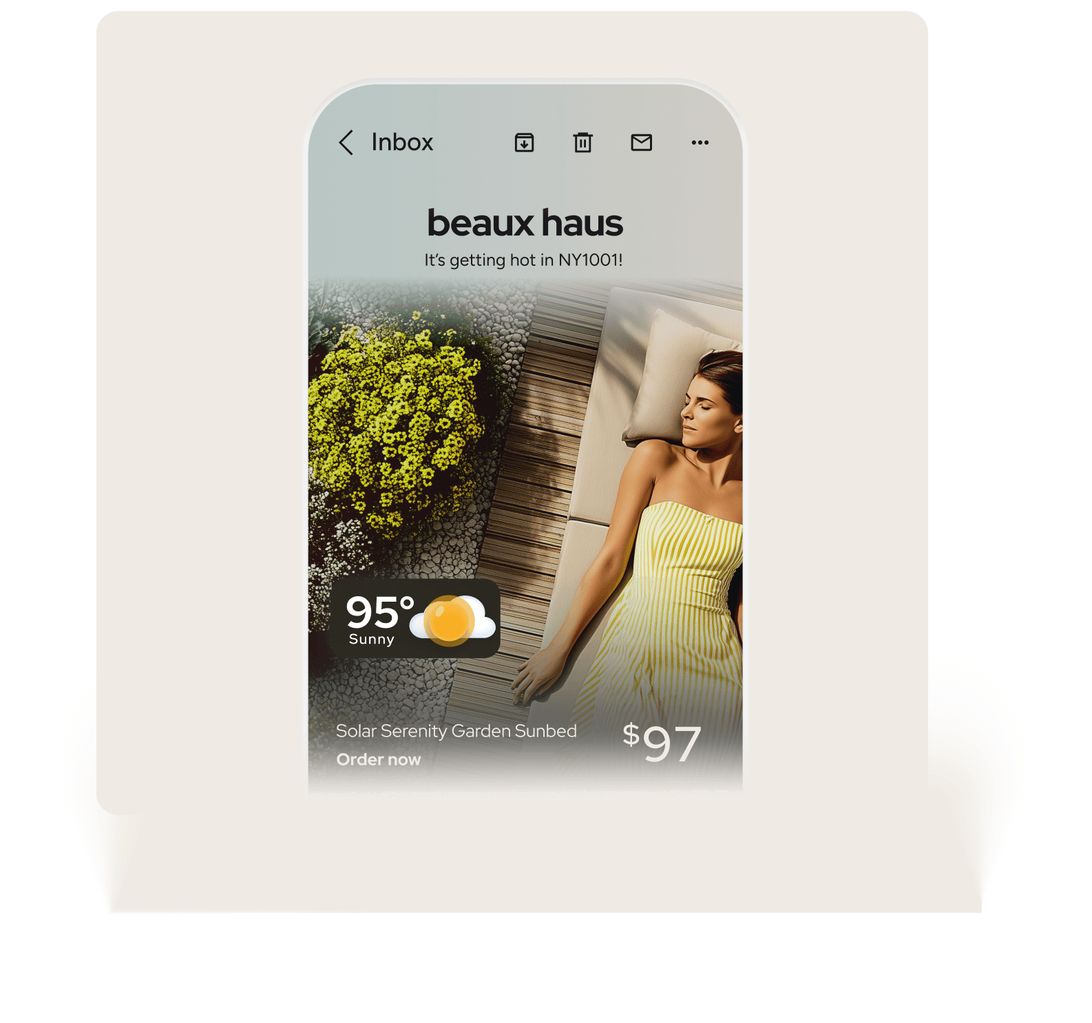 Deliver immersive, AI-powered experiences that stand out in the inbox – and convert. Use customer data combined with dynamic content