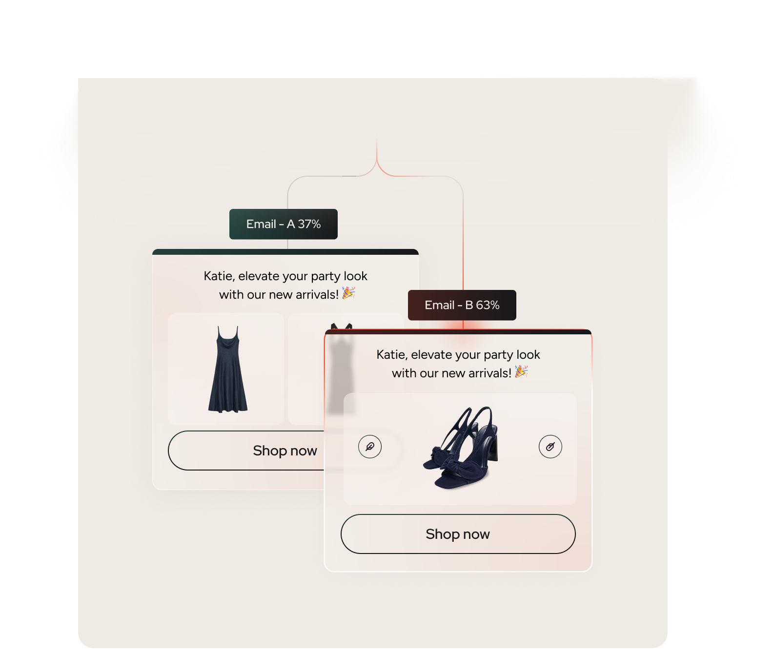 Test multiple variations at once with A/B/n experiments, then automatically serve the top performer based on real-time results. Higher email performance, less manual work.
