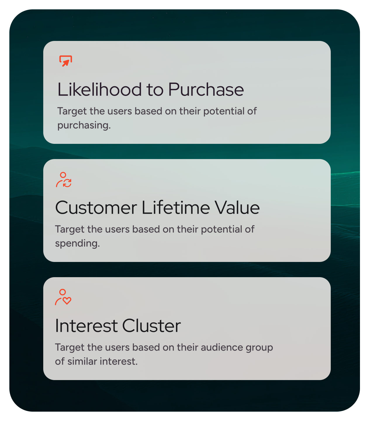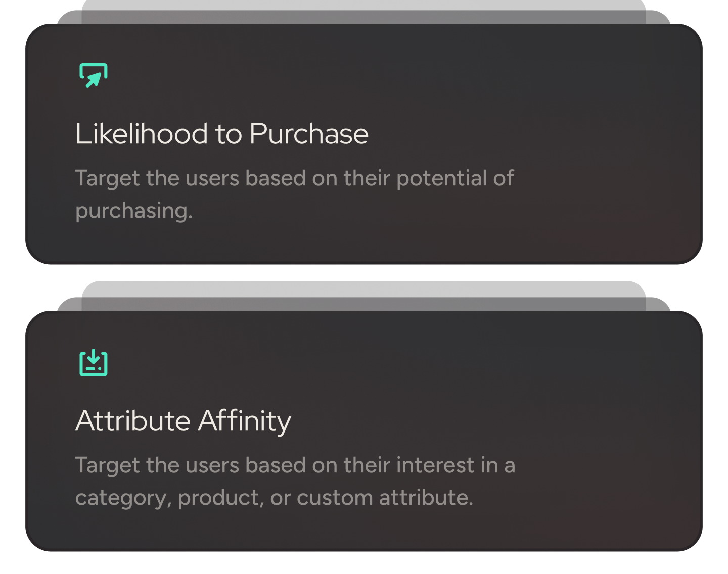 Target with precision with 120+ segments, including dynamic, predictive, and behavior-based preferences.