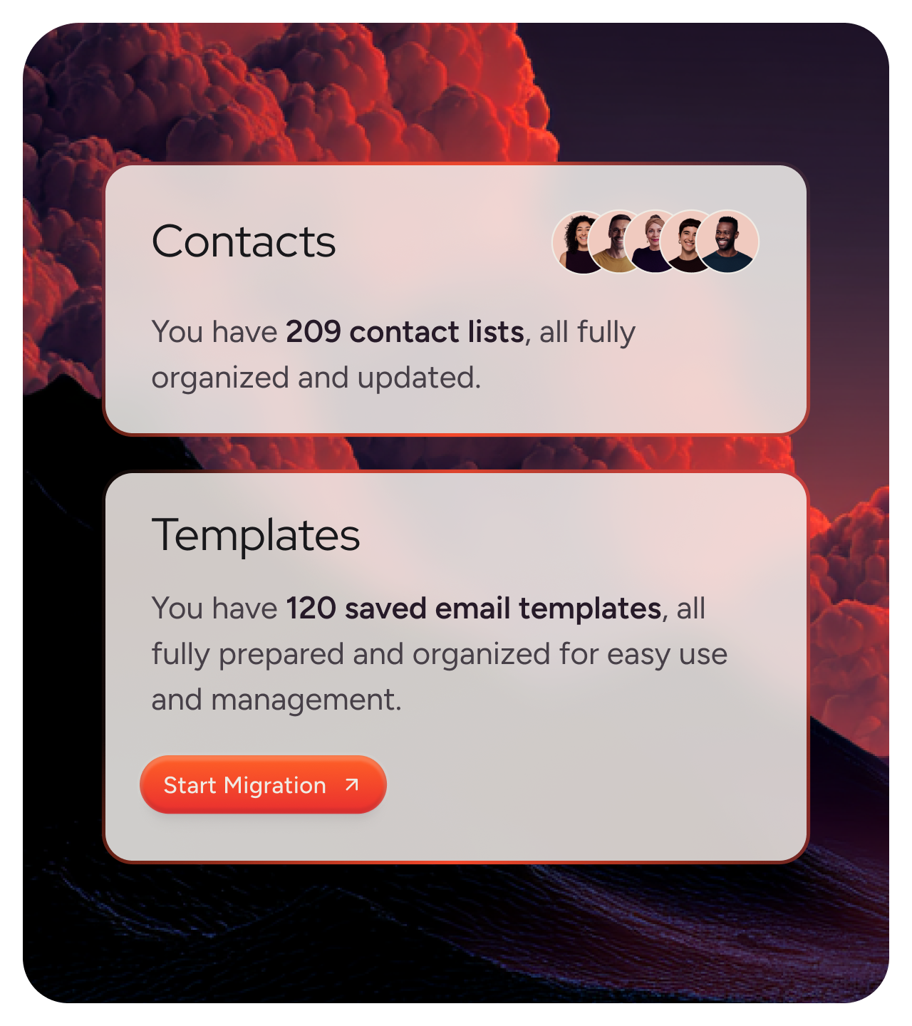 Get up and running in weeks. Migrate your templates and contacts easily with our automatic migrator tool.