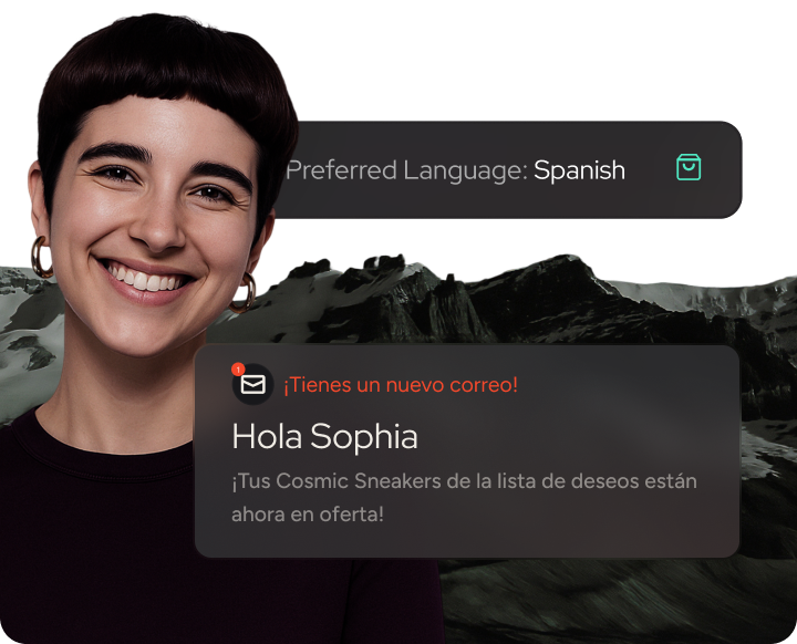 Incorporate AI-led localization to translate and localize campaigns with one click, based on the recipients’ language of choice.
