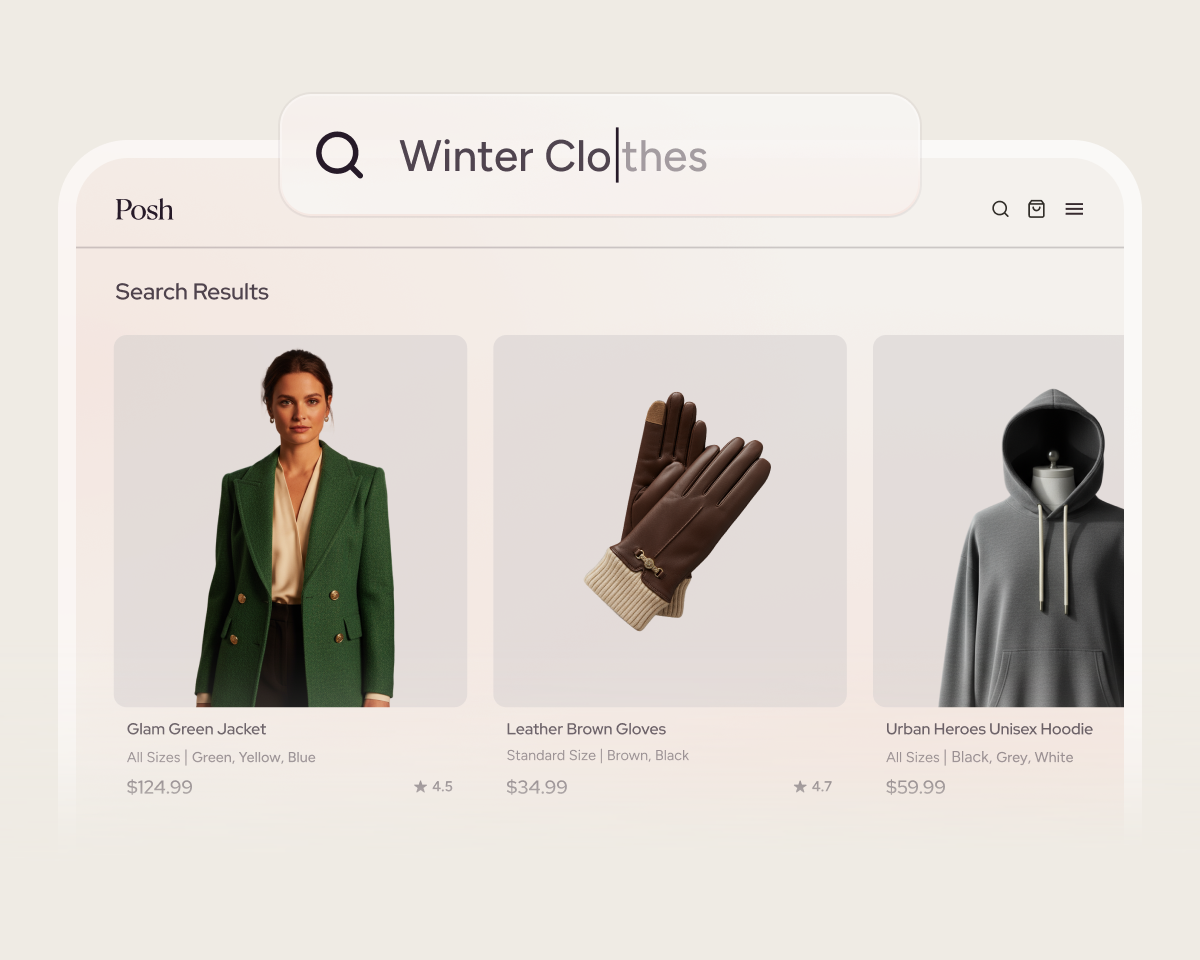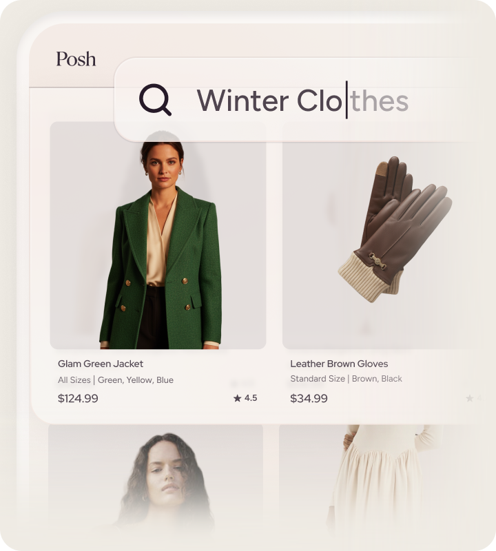 Show instant previews as shoppers type with intelligent autocomplete and dynamic product displays to capture and convert intent early.