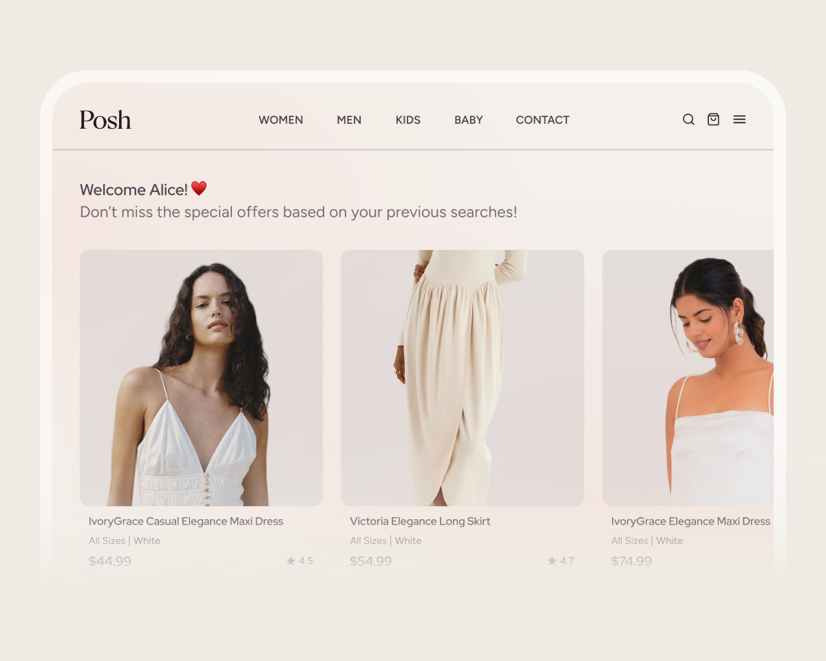 Reorder results instantly with dynamic scoring to surface products that match each shopper’s preferences from favorite brands, sizes, colors, and more.