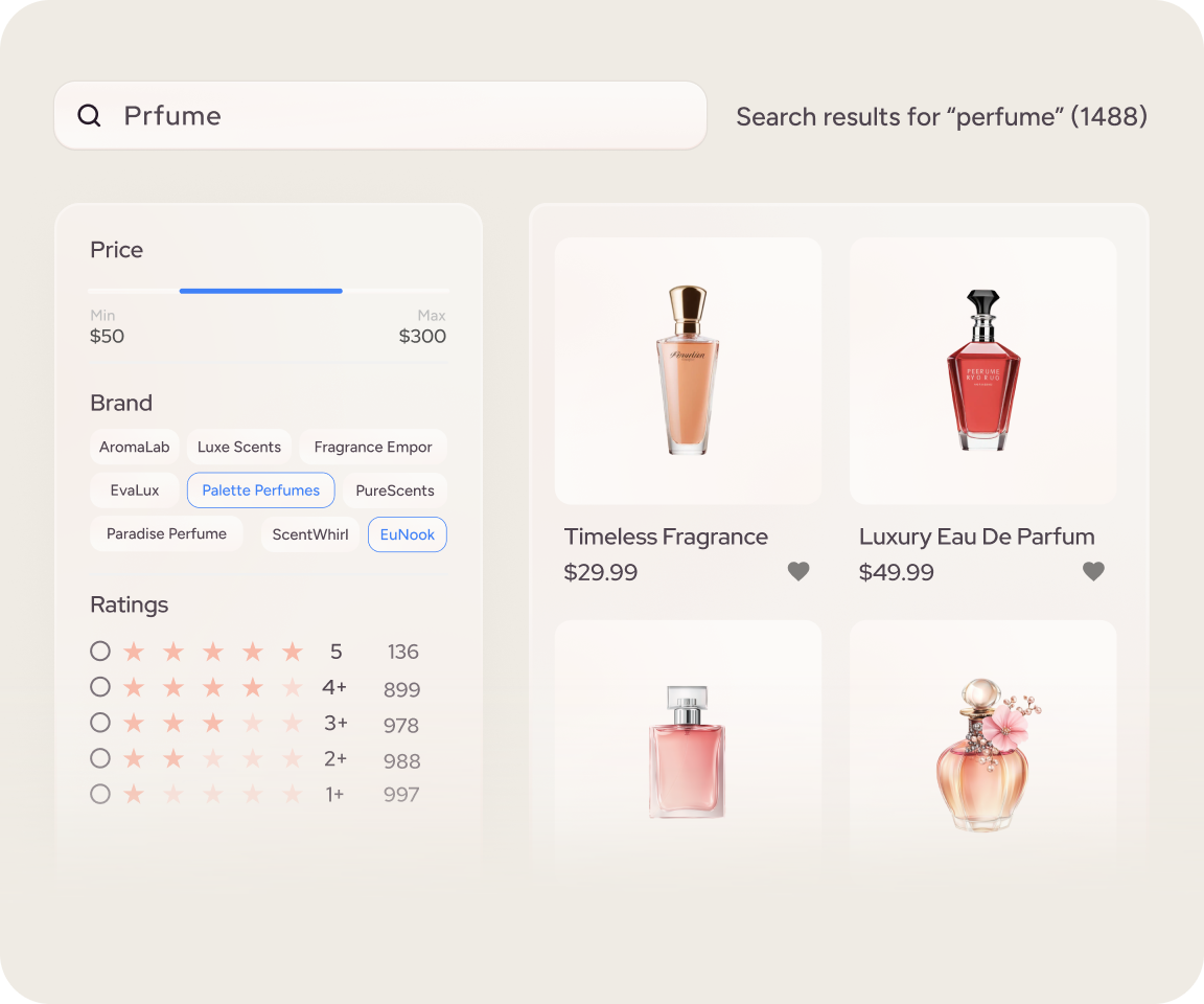 “Galazy phones” or “galaxy phones? Typos are common in search queries. Eureka understands shoppers’ search intent and shows the best matching search results.