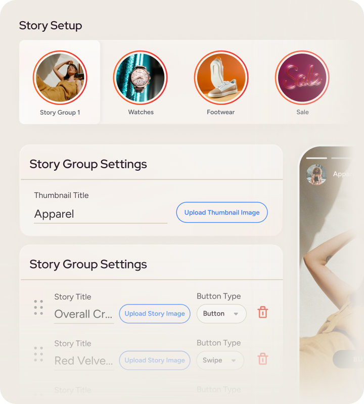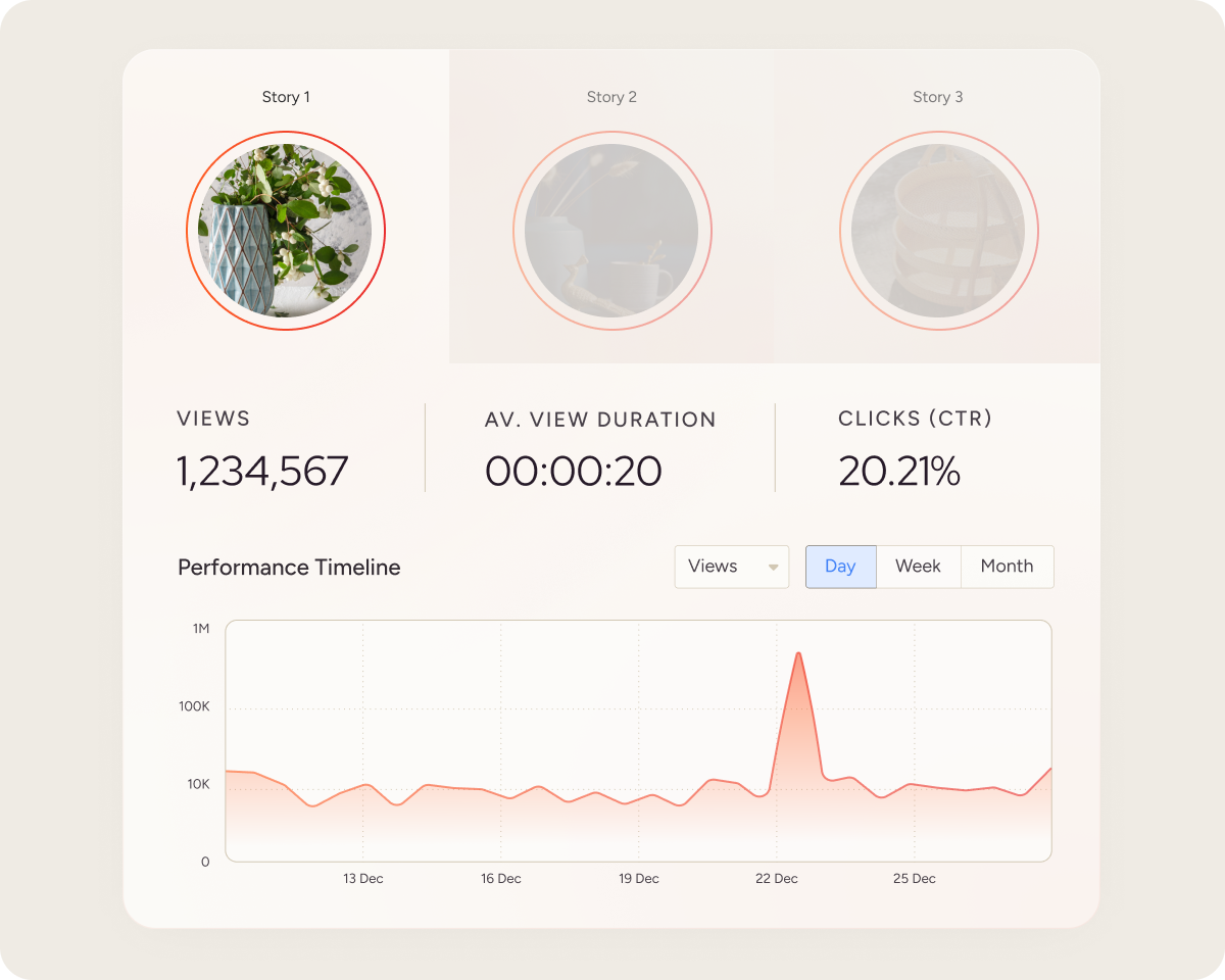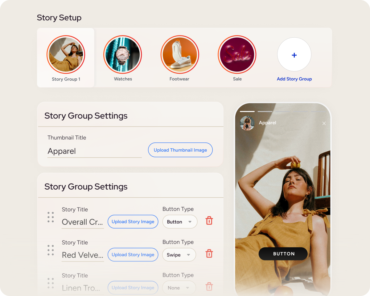 您的訪客熟悉並使用 TikTok、Reels 和 Instagram 限時動態。InStory 就是我們針對這三個平台的解答。透過這種用戶熟悉的限時動態格式,降低跳出率並提升互動率。透過為每個人量身定制的沉浸式體驗,快速引導訪客找到相關產品。