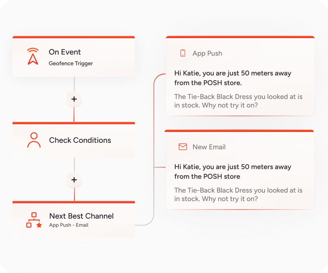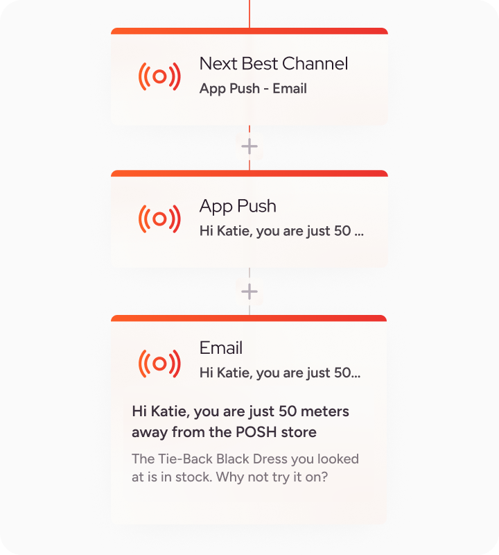 使用 Insider One 的 AI 驅動客戶旅程建構器 Architect,跨 12 個以上渠道**創建零摩擦的客戶旅程。從提高 App 下載量到推動 App 內購買,Architect 使您能夠在客戶參與的任何地方與他們互動,包括 App、電子郵件、簡訊、WhatsApp 等等。
