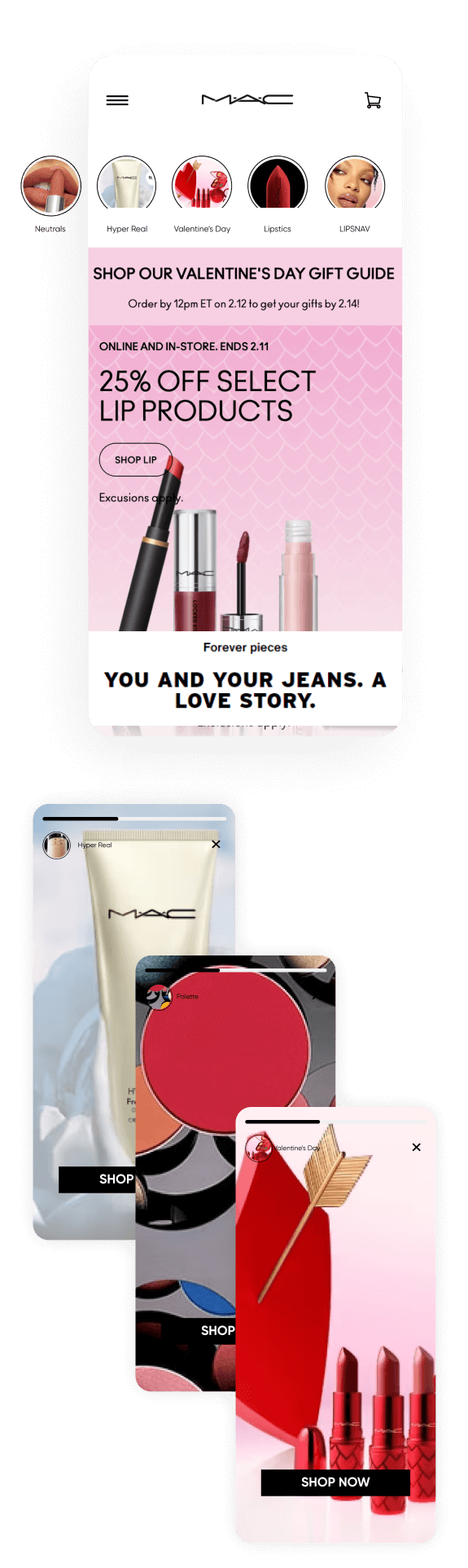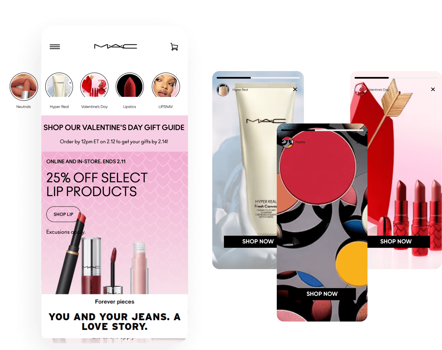 Insider proposed InStory, an interactive story overlay that delivers fullscreen Instagram-like experiences on Mobile Web. Using the InStory dashboard, MAC was able to showcase its best-selling and trending products, plus festival and seasonal offers, in an immersive format designed to encourage discovery and engagement. InStory captivated shoppers, guiding them to specific product pages where they could make a purchase.