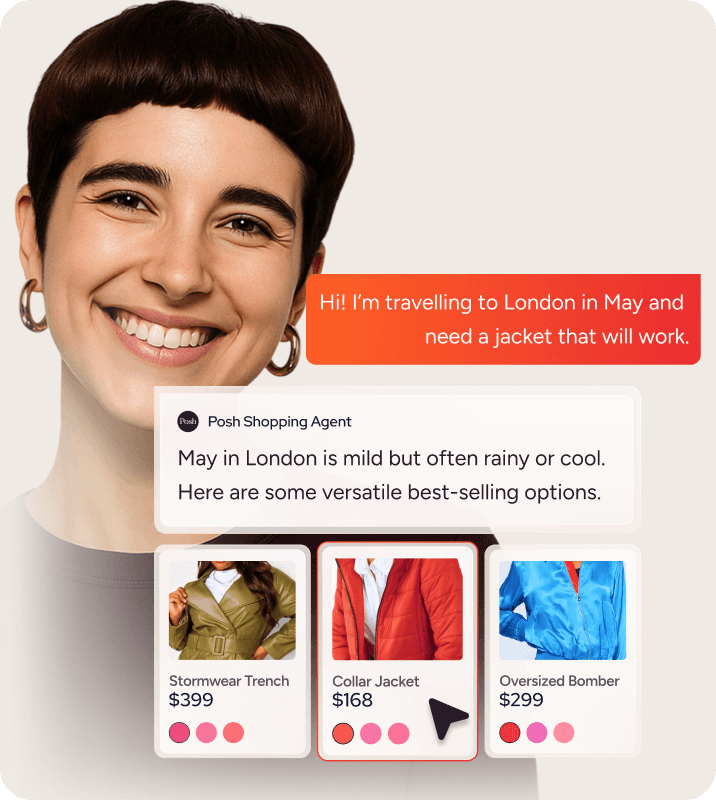 Understand intent in real-time and engage in personalized conversations that guide shoppers to what they’re looking for and help them reach checkout faster.