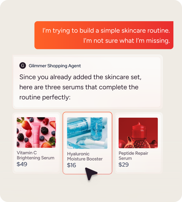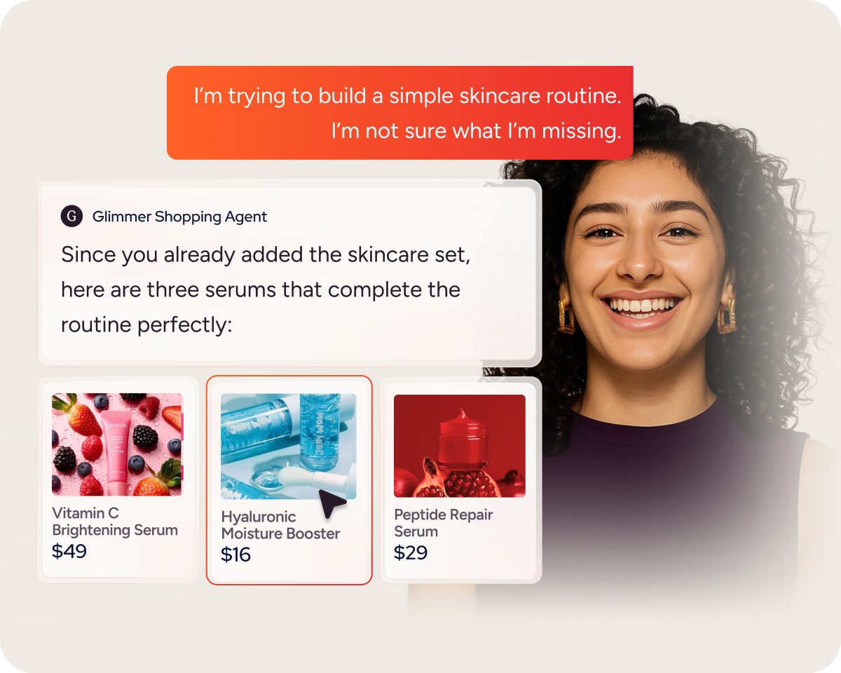 Our always-on agent engages shoppers in a two-way conversation to drive value 24/7, to recommend products, anticipate intent, and build purchase confidence.