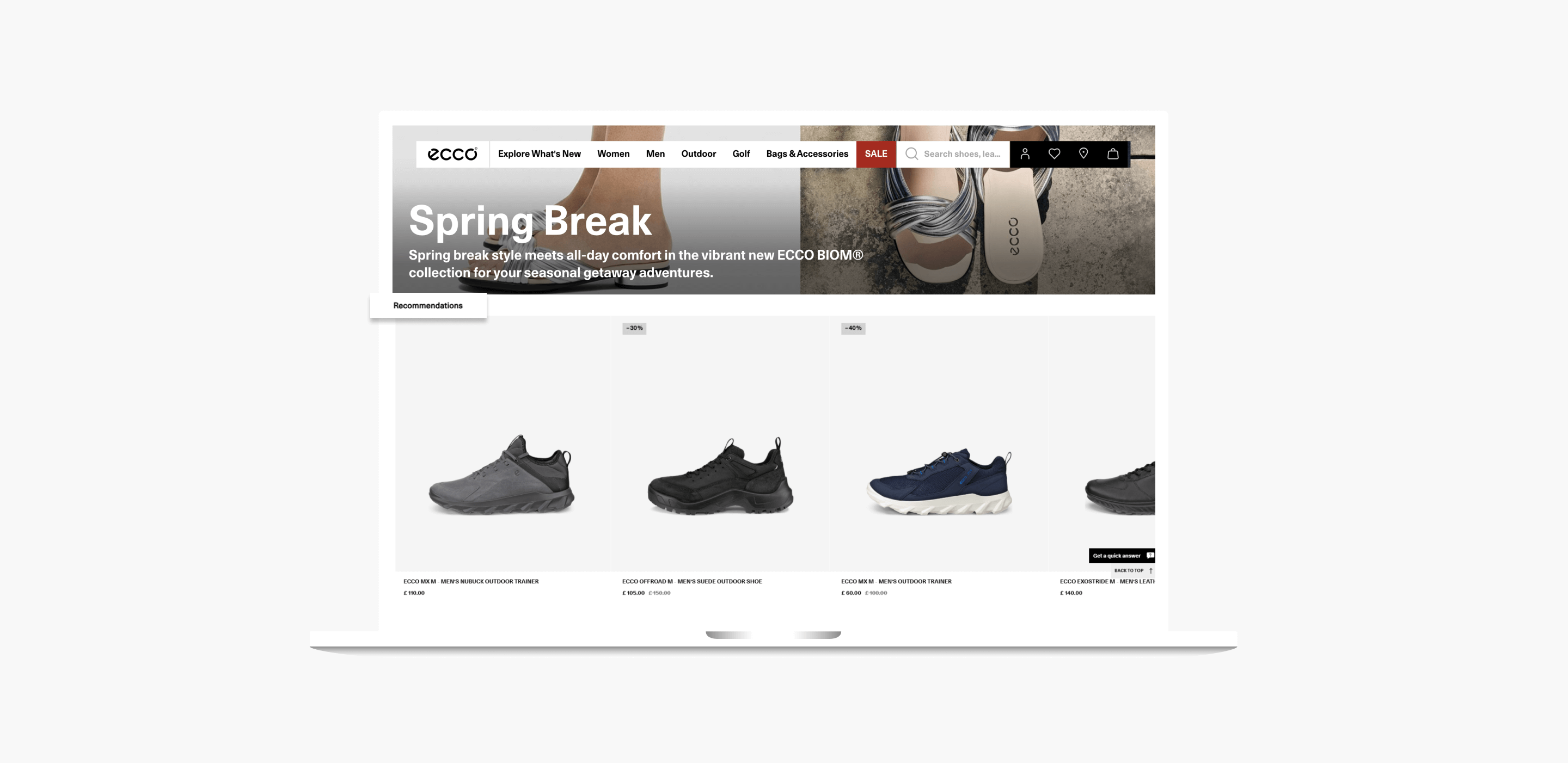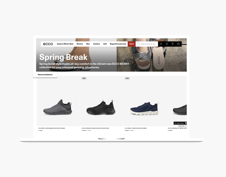 ECCO implemented Insiders Smart Recommender across its website in six geographies. The capability delivers Al-powered product recommendations across critical areas, including the Product Listing Page, Product Detail Page and Cart pages, based on individual user preferences and behavior.