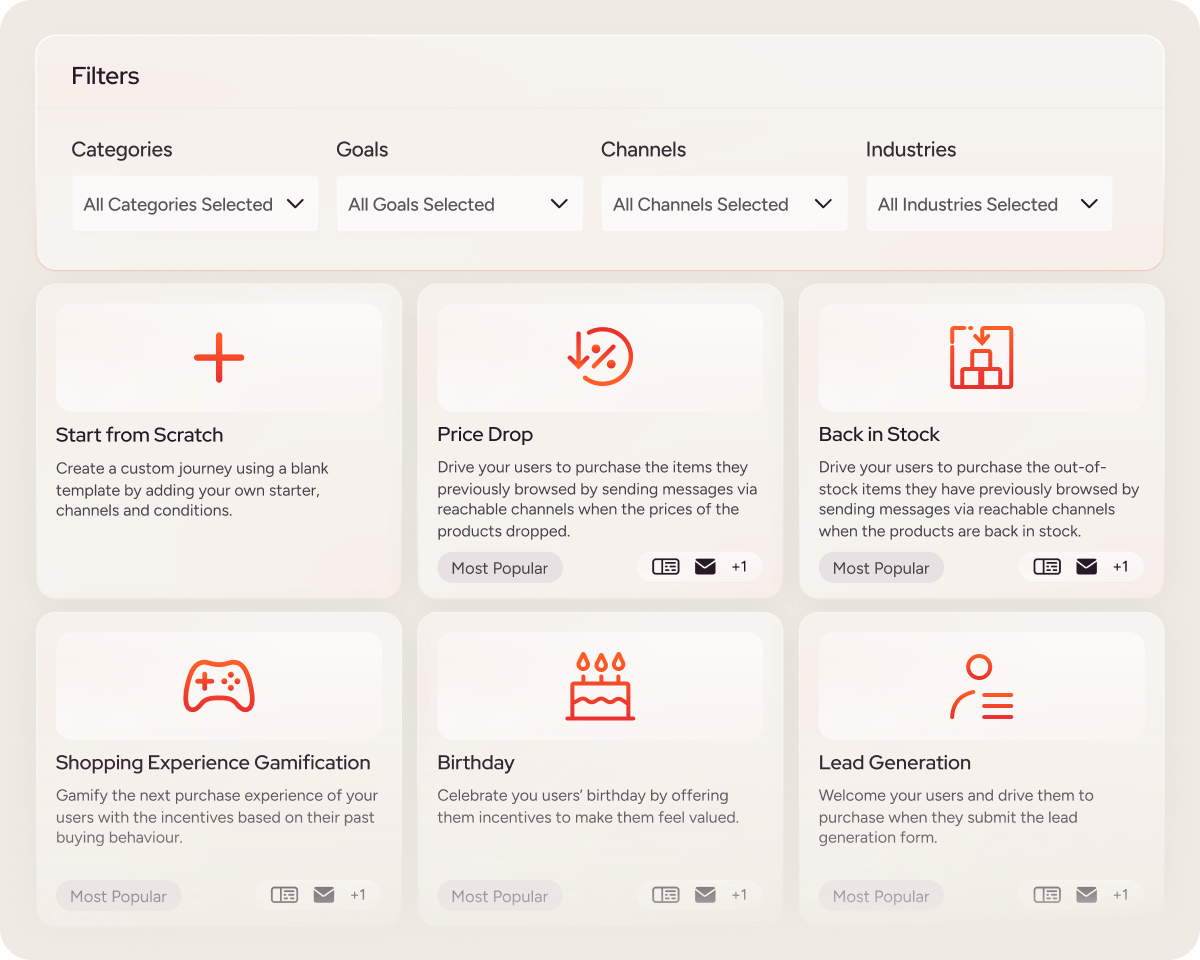 Access hundreds of tools and templates to quickly launch relevant, high-impact experiences while reducing costs, complexity, and reliance on developers.