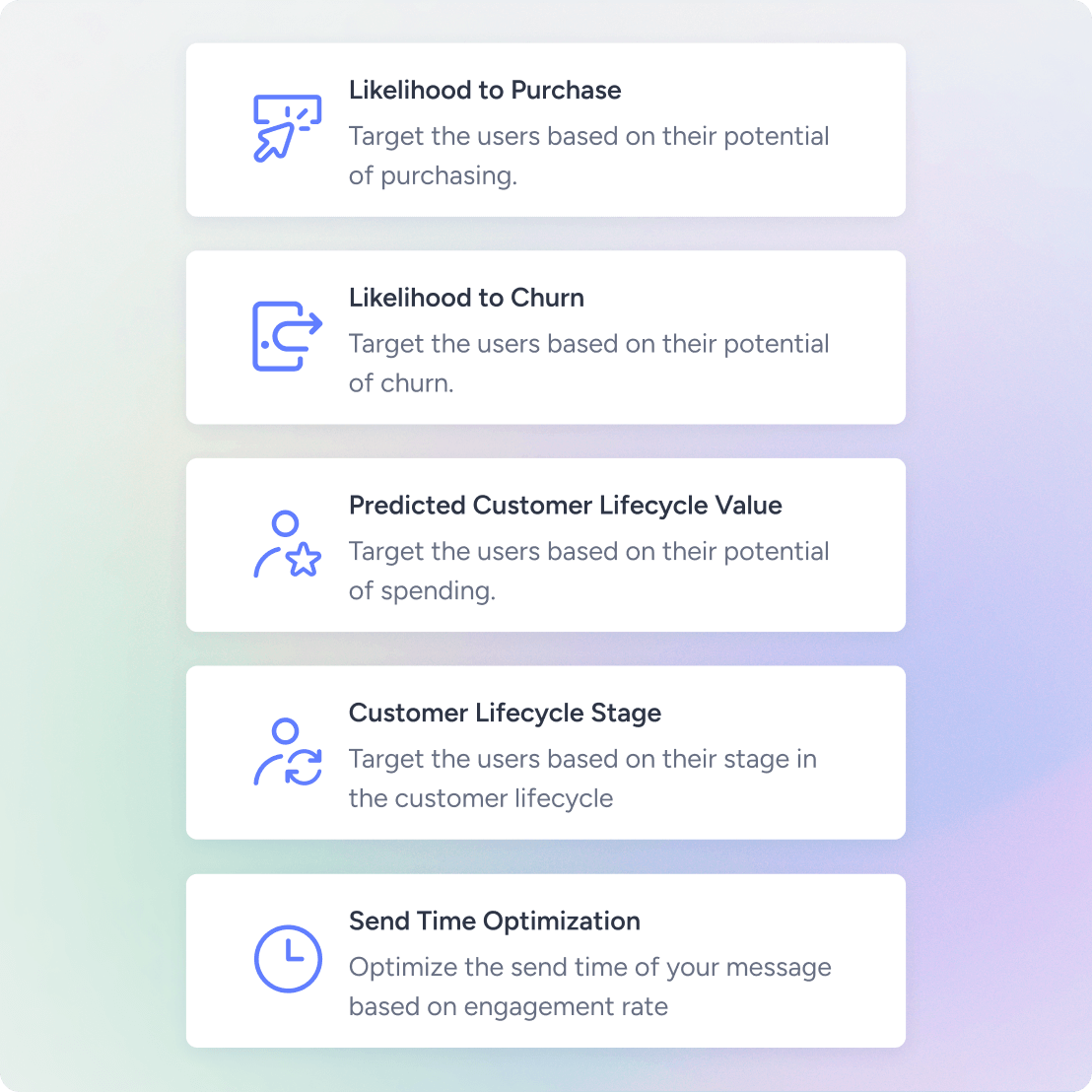 Identify your high-value customers and the best moments to engage them with AI-driven predictive targeting. By analyzing real-time data and behavior patterns, reach the right audience with the right message— boosting conversion rates without the guesswork.