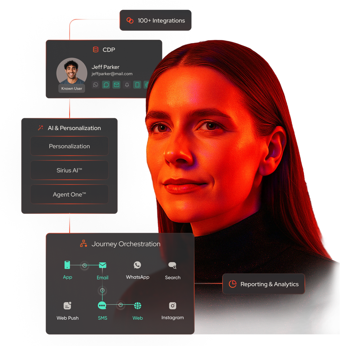 "單一平台、全通路制霸、無限增長潛能。 客戶數據平台 (CDP)・AI 智慧引擎・個人化・跨渠道旅程編排・數據洞察報告"