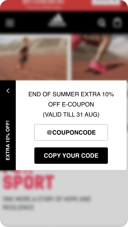 For instance, Adidas used our segmentation capabilities to show targeted promotional offers to different customer segments. Our team helped them create different variations of a side menu coupon and A/B test them to see which ones produce the most conversions.