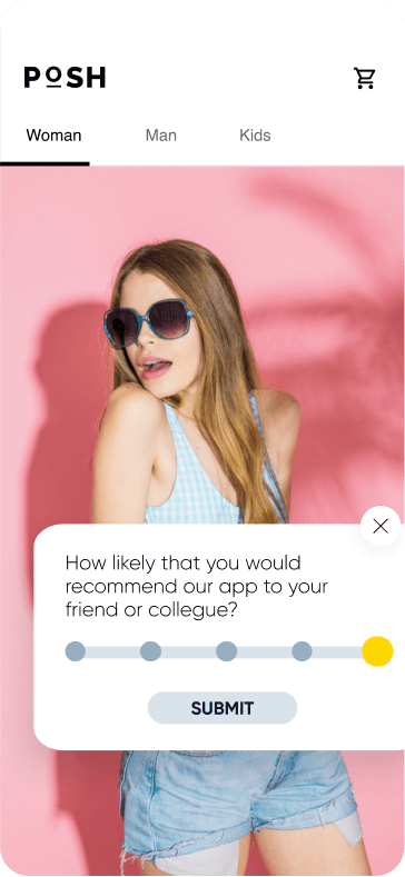 For example, say you have a visitor who showed an interest in black shoes and gray hoodies but didn’t buy anything even with relevant product suggestions. You can run a quick survey to understand why they didn’t convert — maybe they bought these items from another site or they thought the price was too high.