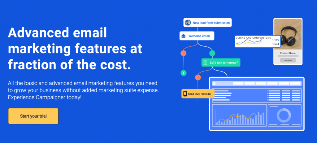 These platforms are primarily built for creating and automating single messages or campaigns across SMS and email. They also have features for personalizing your marketing but they’re not as advanced as the personalization features of the previous platform.